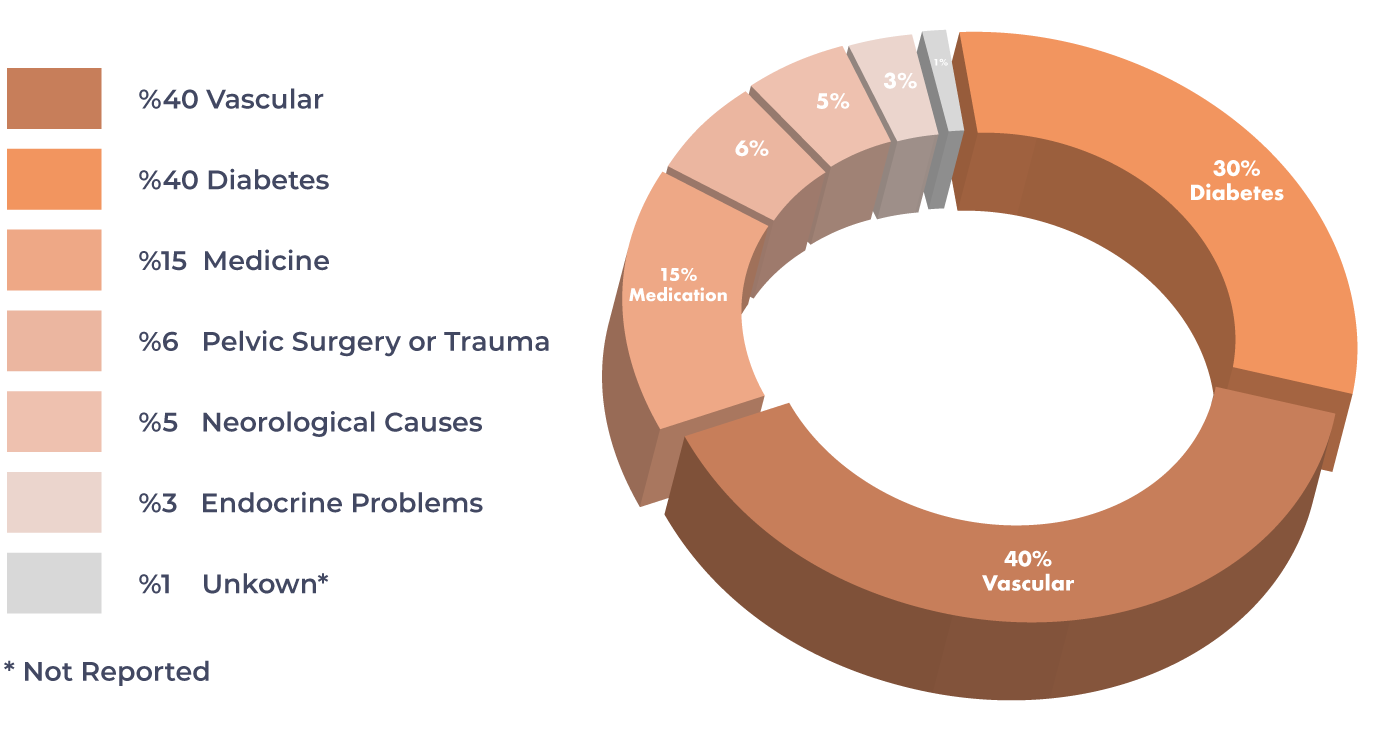 Vascular issues and diabetes account for 70% of the physical causes of erectile dysfunction.1